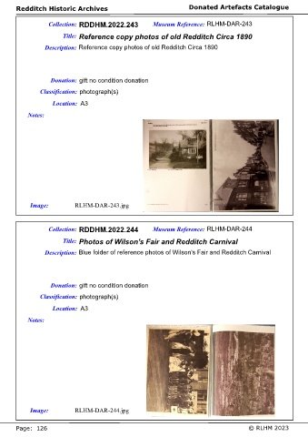 Description: Blue folder of reference photos of Wilson's Fair and Redditch Carnival
