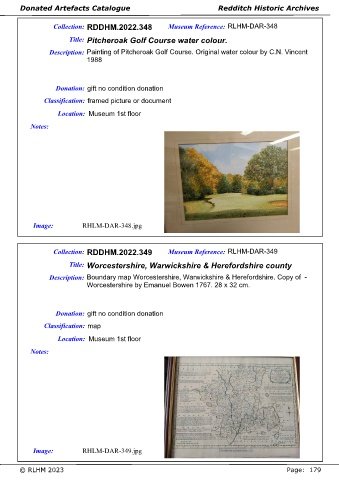 Donated Artefacts Catalogue Redditch Historic Archives