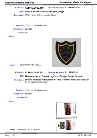 Page 230 - Artefacts Catalogue