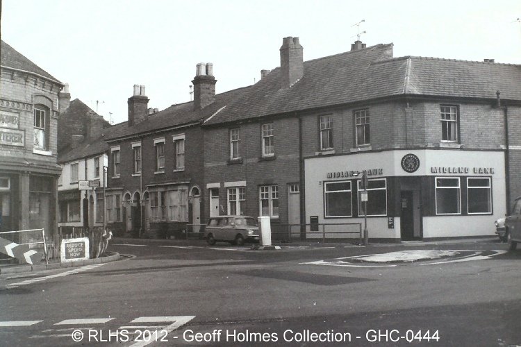 Mrs. Gardner's shop on the left hand corner and the Midland Bank opposite on Evesham Road, Headless Cross.