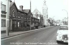 The Headless Cross end of Evesham Road looking towards the town with the Methodist Church and its steeple a prominent landmark.