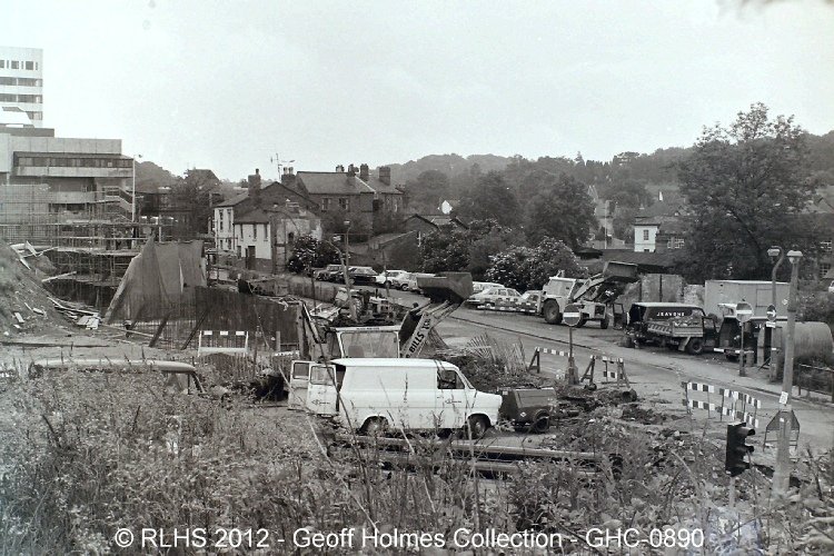 Work on the retaining wall for the Ringway along Windsor Street, now Hewell Road.