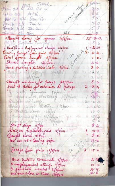 Extract from one of Ernie Caters “Accounts” books